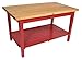The John Boos Classic Country Work Table (Model C) features a 1.75-inch butcher block top. Its base comes in 12 different colors with 0, 1 or 2 slatted shelves.
