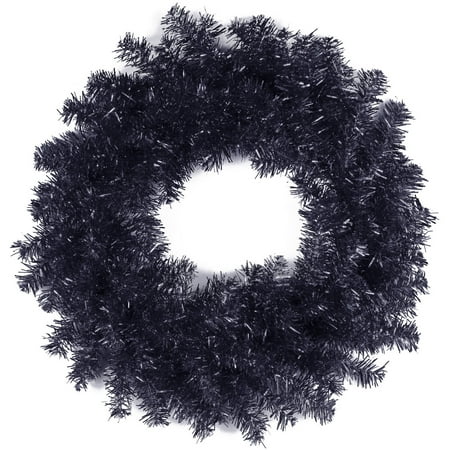 <br /> <b>National Tree 24" Black Tinsel Wreath:</b> <ul> <li>24" diameter</li> <li>130 branch tips</li> <li>Indoor or covered outdoor use</li> <li>Fire-resistant and non-allergenic</li> </ul>
