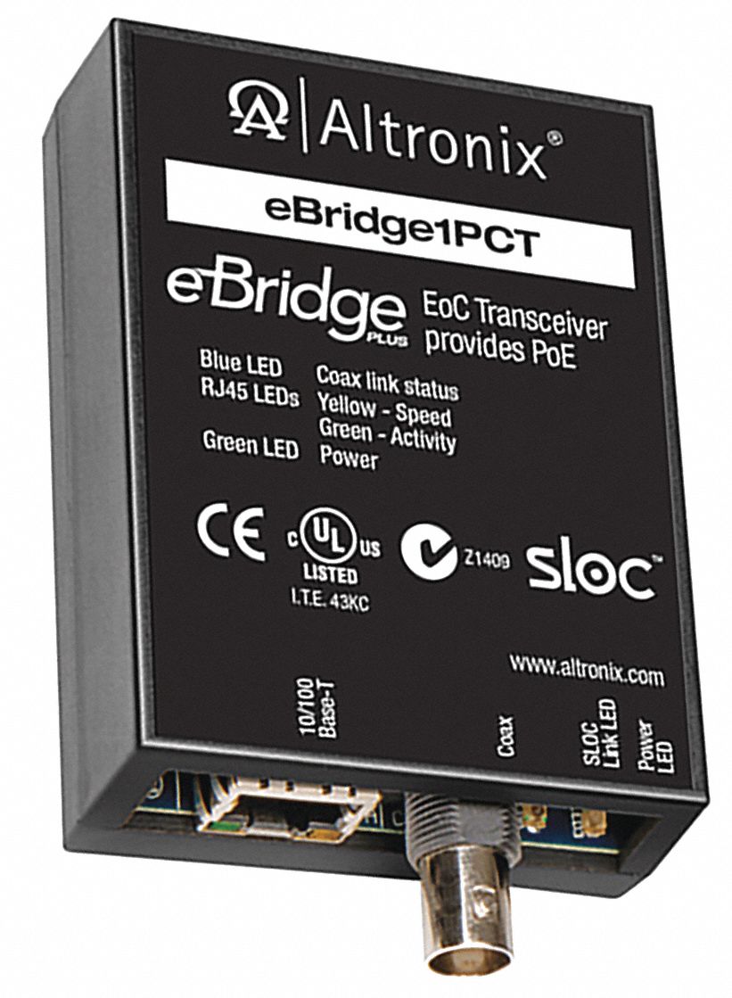- ALTRONIX EBRIDGE1PCT PoE Transceiver,1 Cam. Input,2-1/2" W
