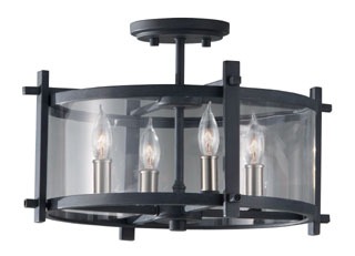 Generation Lighting SF292AF/BS Ethan Glass Semi Flush Ceiling Lighting, Iron, 4-Light (16" Dia x 11" H) 240watts