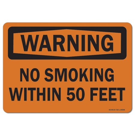 OSHA Warning Sign, No Smoking W/in 50 Feet, 14in X 10in Aluminum
