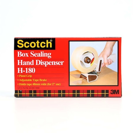 Quick and Comfortable Tape Gun Lightweight and durable, Scotch? Box Sealing Tape Dispenser H180 is a portable, easy-to-operate, hand-held tape dispenser. This packaging tape dispenser has a pistol-grip design that allows the operator to apply, cut and buff tape in a fluid, one-hand motion. Scotch? Box Sealing Tape Disp
