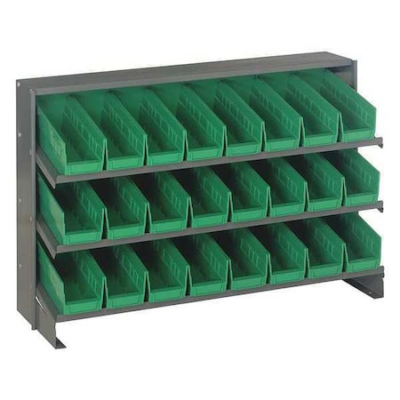 Quantum Storage Sloped Bench Rack, 3Shelves, 24Bins, Grn - QPRHA-101GN