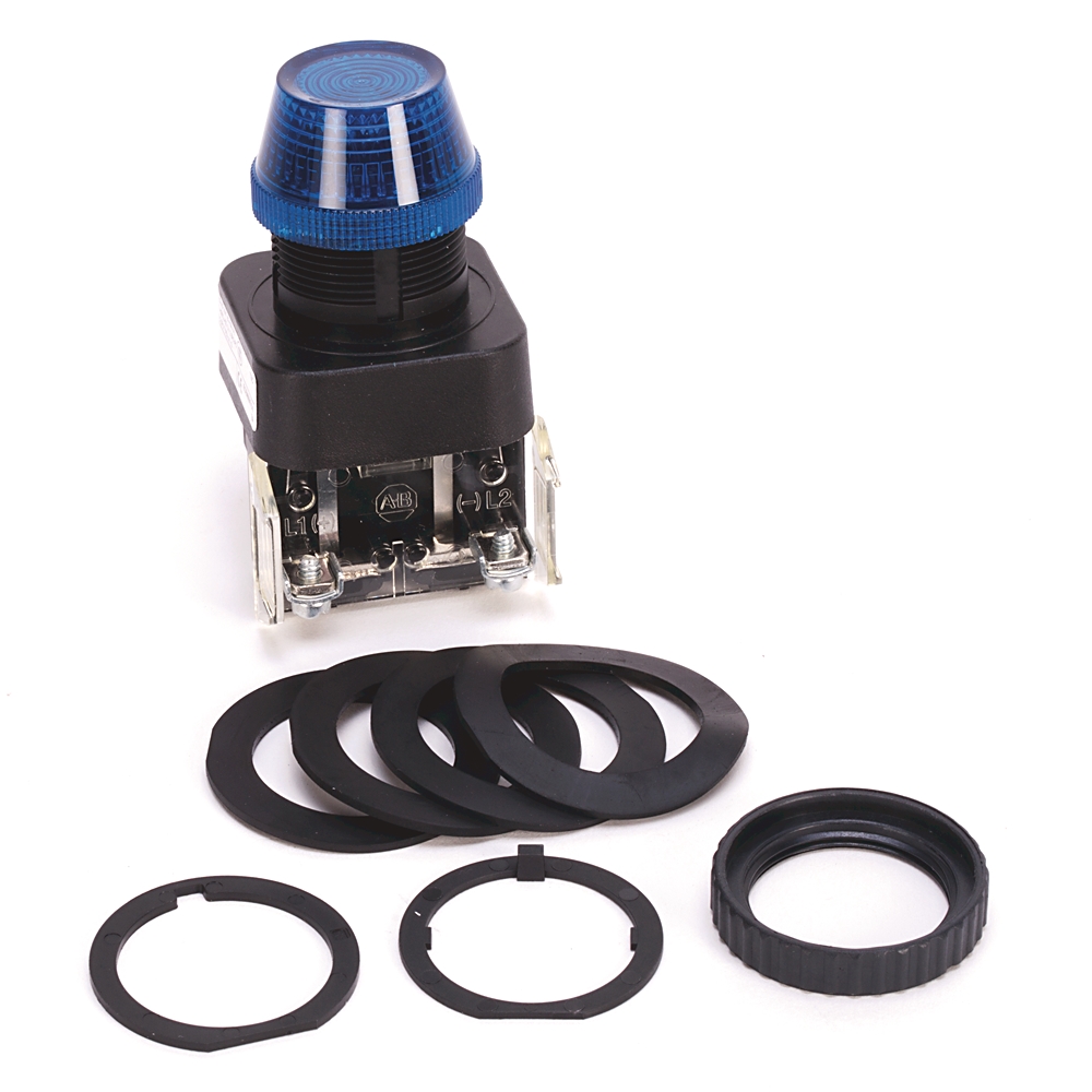 ALLEN BRADLEY 800H-QR10B Blue, 30 MM, Pilot Light, 120V AC/DC, Full Voltage