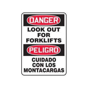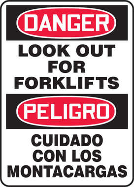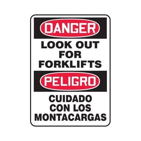 Accuform SBMVHR110XT Spanish Bilingual Legend "Danger Look Out for FORKLIFTS/PELIGRO CUIDADO CON" Sign, 14" Height, 10" Wide, 14" Length, 0.060" Thickness, Dura-Plastic, Red/Black on White