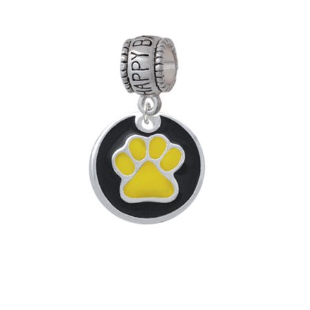 Silver Tone Yellow Paw on Black Disc - Happy Birthday Charm Bead Hanger. Hand enameled Silver Tone charm. Charm size is approx. 0.54 x 0.54 x 0.14 inches (HxWxD) including loop. Charm Hanger Bead is approx. 13x10x8 mm (HxWxD) Hole size 5.5 mm. Our Charm Beads are compatible with most Charm Bead Bracelets. Also makes a great charms pendant. Featured charms is an exclusive Delight & Co. design. We are a family owned company for over 35 years in the U.S.A. PLEASE NOTE: Our products are lead safe, but are not intended for children 14 years and younger.