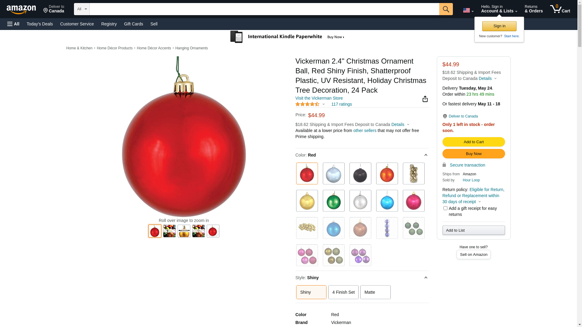 2.4" - Red - Shiny - Ball - UV Resistant - Shatterproof | Vickerman Christmas Tree Ornament (24 pack)