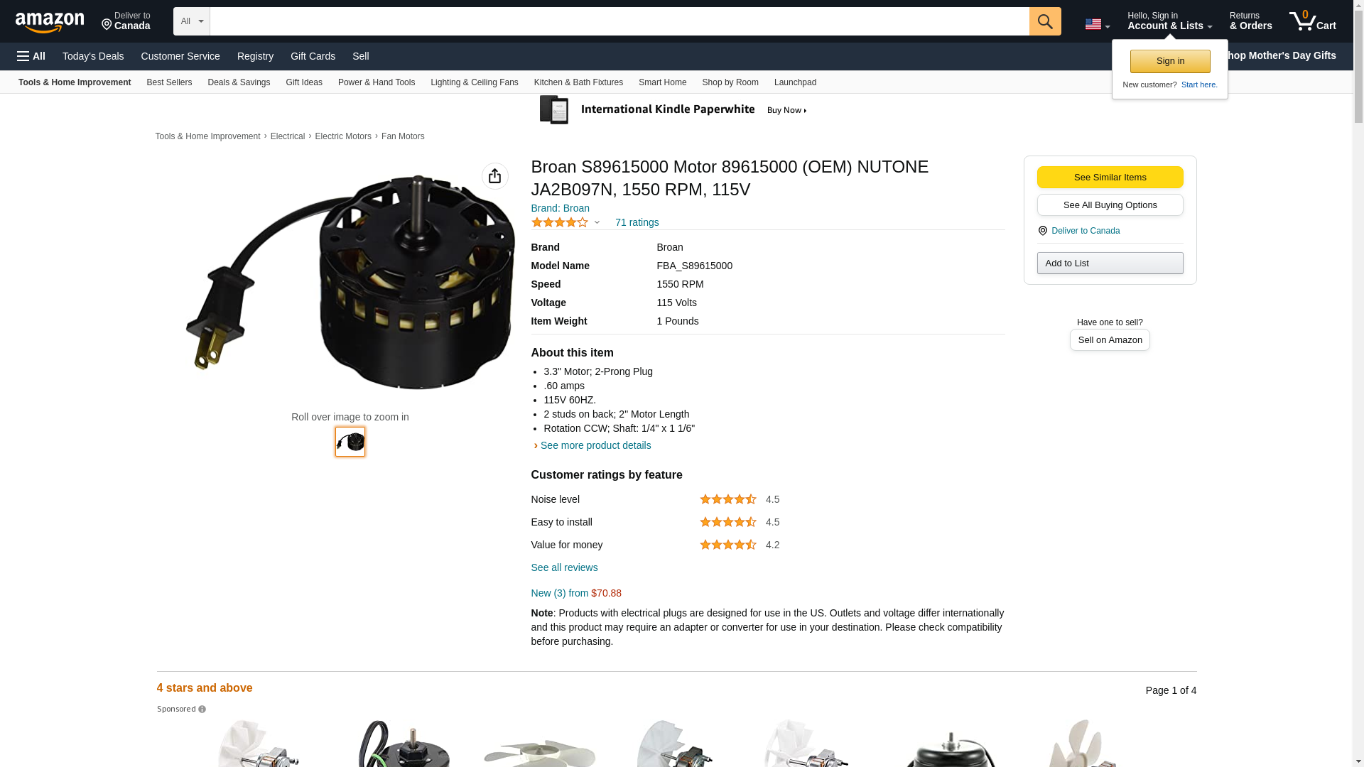 S89615000 NT SRV ASM MOTOR from BROAN-NU TONE LLC