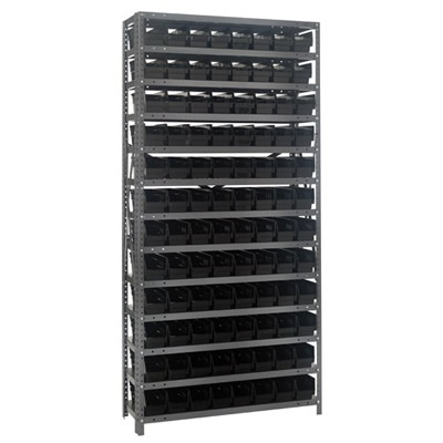 Quantum Storage 1275-101BK Steel Shelving Unit with 4" Shelf Bins, 12" D x 36" W x 75" H, Black