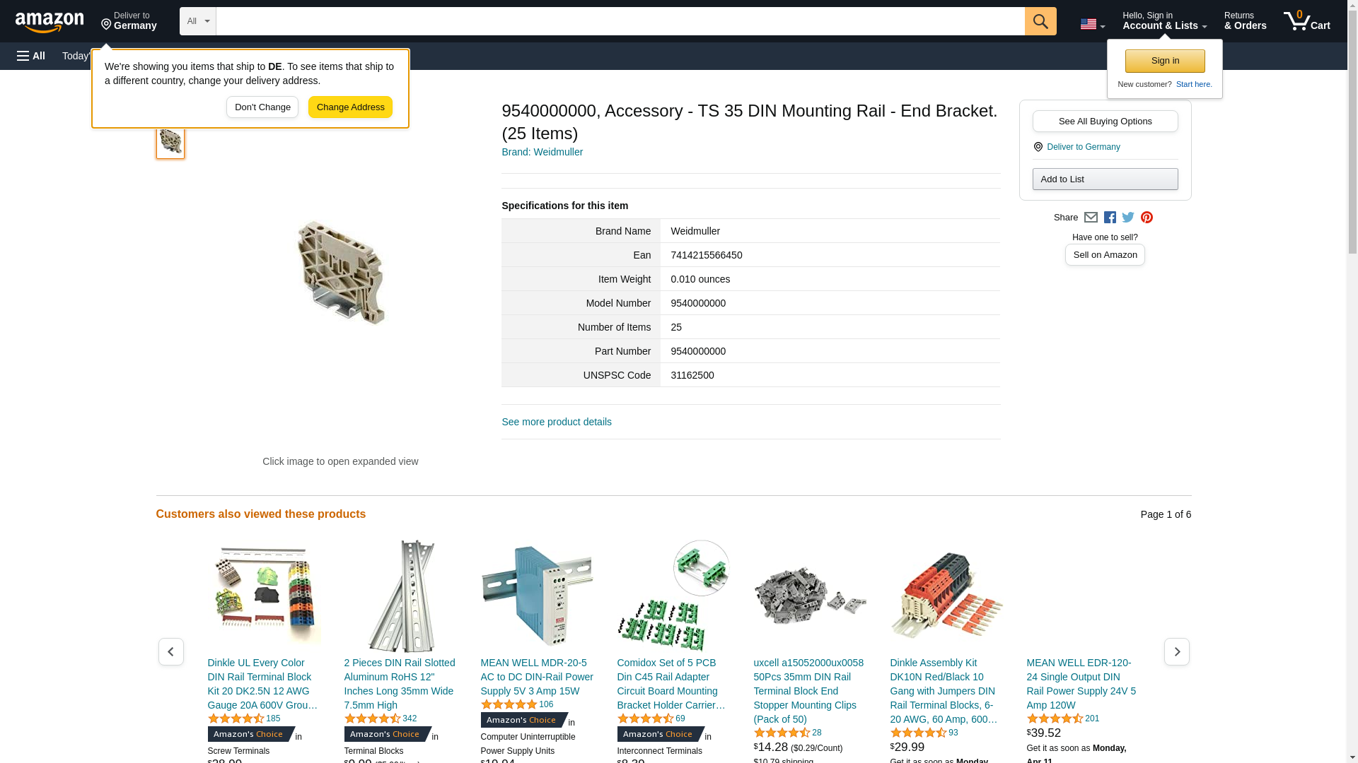 WEIDMULLER 9540000000 END BRACKET, TS 35 DIN MOUNTING RAIL (100 pieces)