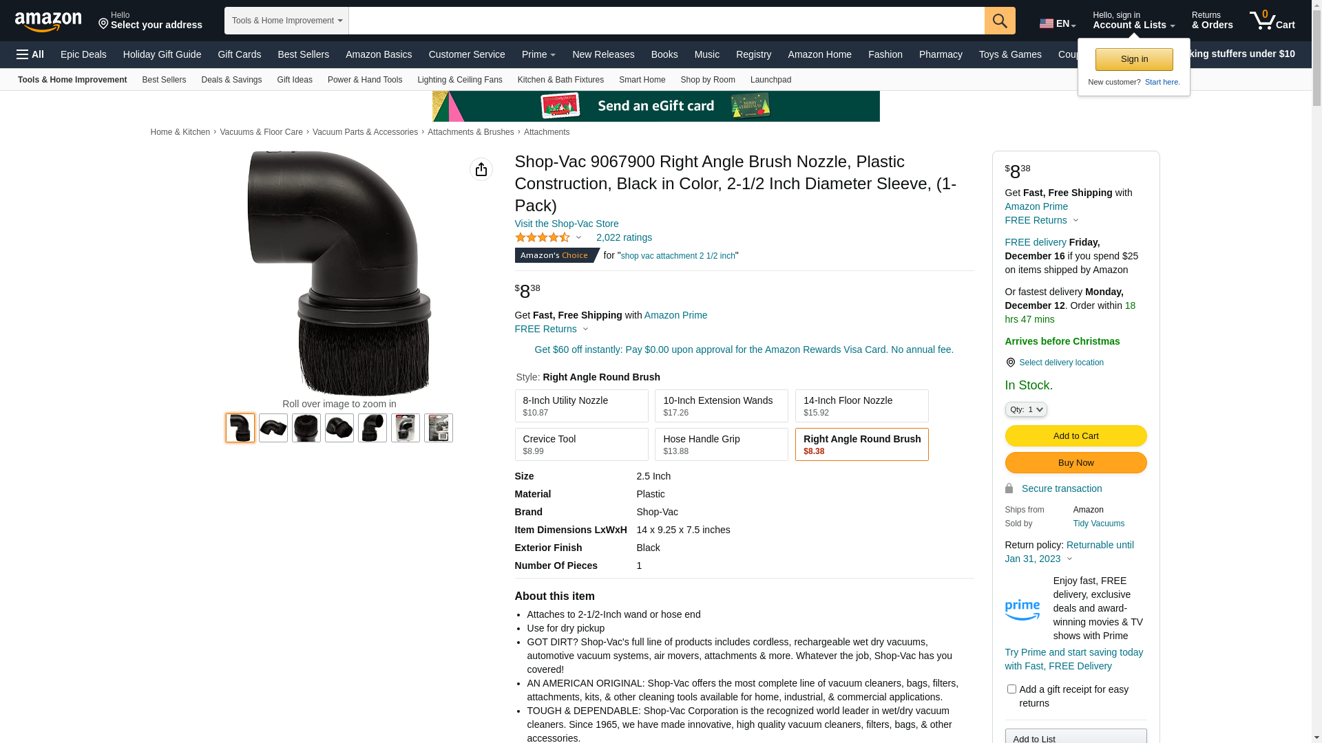 Shop-Vac 9067900 Right Angle Brush Nozzle, Plastic Construction, Black in Color, 2-1/2 Inch Diameter Sleeve, (1-Pack)