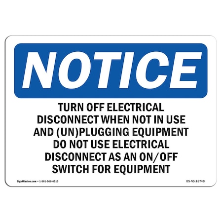 OSHA Notice Sign, Turn Off Electrical Disconnect When Not, 7in X 5in Decal