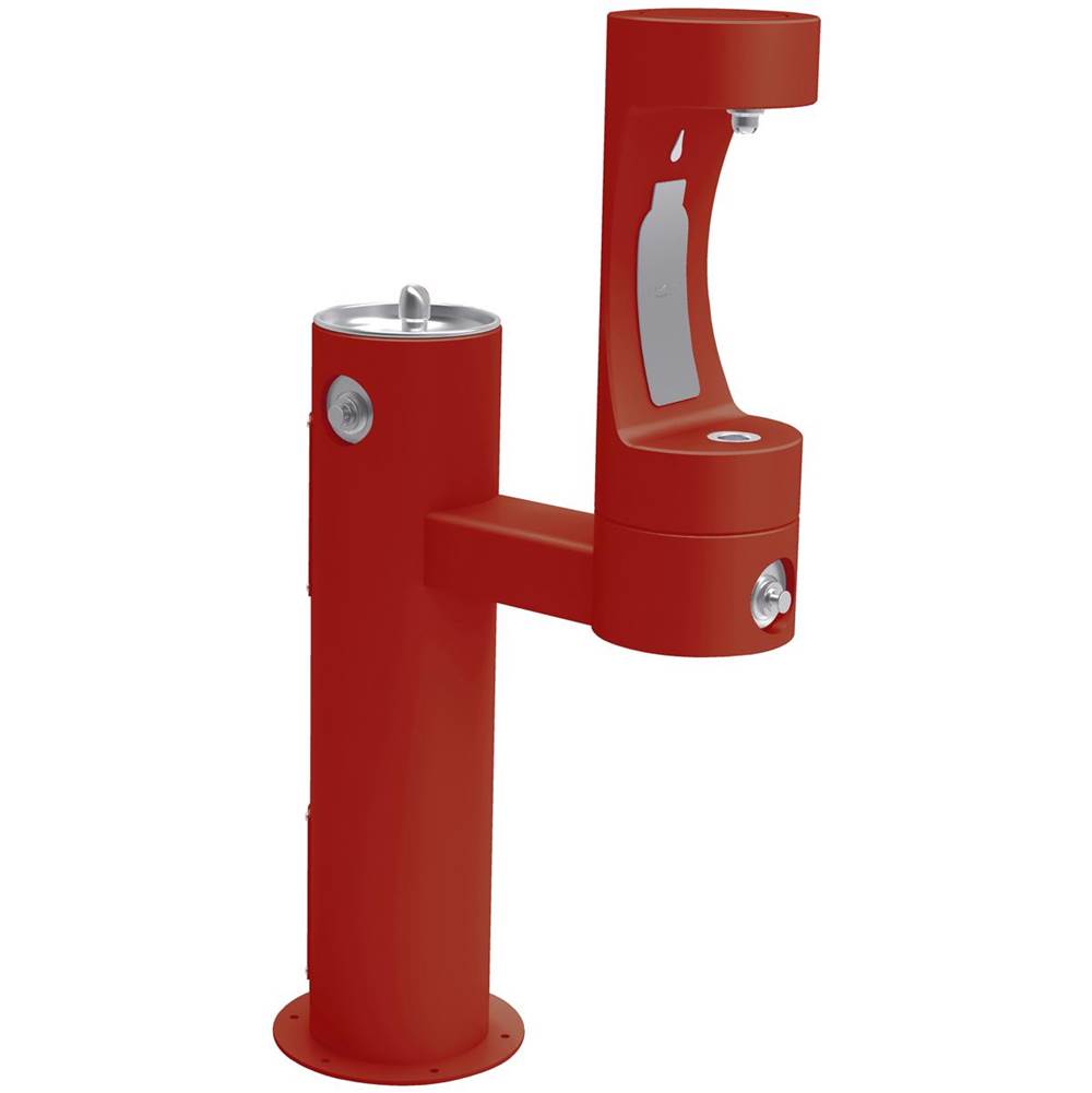 Elkay Halsey Taylor Endura II Outdoor HydroBoost Lower Bottle Filling Station Bi-Level Pedestal Non-Filtered Non-Refrigerated FR Red
