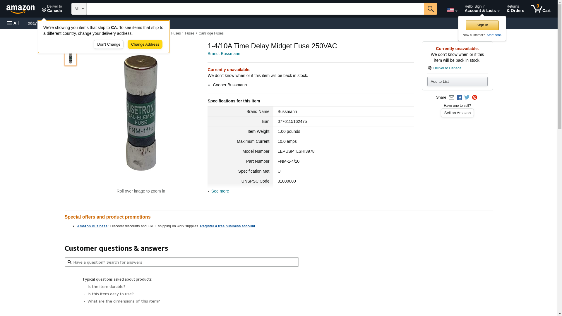 FNM-1-4/10 | FNM-1-4-10 | BUSSMANN Midget Fuse - Low Voltage - North American Division