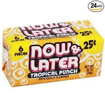 <div id="pack_be" style="display:none"> <table id="case_info"> <tbody> <tr> <td> Packs in one case </td> <td> : <span id="packs_in_case">12</span> </td> </tr> <tr> <td> Size information </td> <td>: <span id="size_info">12-.93 OUNCE</span> </td> </tr> </tbody> </table> </div> <div class="productDescriptionWrapper"> NOW&LATER CHANGEMAKERS BARS TROPICAL PUNCH - 25c 6 pcs Each ( 24 in a Pack ) <div class="emptyClear"> </div> </div> <br /> <ul> <li>Sour Candy</li> <li>Gum</li> <li>Mints</li> <li>Cookies</li> </ul>