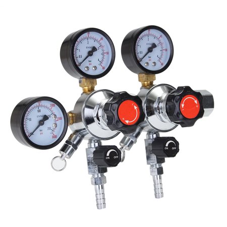 <ul> <li>Features\:</li> <li>100% new and high quality</li> <li>High Quality Materials and Construction!</li> <li>Quick and easy pressure adjustment</li> <li>Automatic and Manual Safety PRV</li> <li>A 2-product regulator allows you to tap 2 kegs from 1 Co2 tank, while still being able to adjust the pressure to each keg individually.Specifications\:</li> <li>Material\: Durable Copper Body</li> <li>3000 PSI (tank pressure) Gauge (X1)</li> <li>60 PSI (keg pressure) Gauge (X2)</li> <li>INLET CONNECTION\: W21.8</li> <li>Shutoff valves\: 3/16" or 5/16"</li> <li>Size\: </li> <li>Choose your shutoff valves in the options above!</li> <li>Package Included\:</li> <li>3 Gauge Draft Beer Co2 Gas Regulator</li> </ul>
