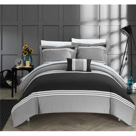 <p>Luxury Bedding Color Block Collection, Enjoy a simple color block looks which accents 3 colors to bring this ensemble to life. This set provides a sophisticated banding technique which has bands sewn in add 3D contrast to the detail of the Duvet Set. Elegant rich tones and Color Block bedding is a great way to simply accent and enhance your bedroom decor. Decorative Pillow included for added luxury. </p> <b>Features</b> <ul> <li>Felma Hotel Collection Striped Patchwork Color Block King Bed in a Bag Duvet Set</li> <li>The digital images we display have the most accurate color possible</li> <li>8 Piece</li> </ul> <b>8 Piece Queen & King Set Includes:</b> <ul> <li>One (1) Duvet, Two (2) Shams, One (1) Dec Pillow, One (1) Flat Sheet, One (1) Fitted Sheet, Two(2) Pillow Cases</li> </ul> <b>King Dimension:</b> <ul> <li>1 Piece Duvet: 104 in. wide x 90 in. long</li> <li>2 Piece Shams: 37 in. wide x 20 in. long</li> <li>1 Piece Decorative Pillow: 18 in. wide x 12 in. long</li> <li>1 Piece Flat Sheet: 108 in. wide x 102 in. long</li> <li>1 Piece Fitted Sheet: 78 in. wide x 80 in. long; Deep Pocket: 12 in.</li> <li>2 Piece Pillow Cases: 40 in. wide x 20 in. long</li> </ul> <b>Care Instructions:</b> <ul> Dry clean preferred. Machine washable, use front loader machine (or top loader without agitator) to avoid Tearing, use Cold water in gentle cycle, tumble dry low heat, adding two tennis balls in the dryer will add fluffiness </ul> <b>Specifications</b> <ul> <li><b>Color:</b> Black</li> <li><b>Size:</b> King</li> <li><b>Style:</b> Casual</li> <li><b>Pattern:</b> Patchwork</li> <li><b>Material:</b> Microfiber</li> <li><b>Weight:</b> 9 lbs</li> </ul>- SKU: CHC419