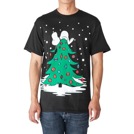<ul> <li>Peanuts Snoopy Men's Christmas T-Shirt.</li> <li>Features Snoopy laying down on the Christmas tree with snow all-over graphic print on the front.</li> <li>Crew-neck, short sleeves, solid black color.</li> <li>100% Cotton. Comfy and lightweight, great quality fabric.</li> <li>Officially Licensed Peanuts Apparel!</li> <li><b>Men's regular sizing. Measurements are approximate in inches, laid flat:<b></b></b></li> <li><b><b>Across Chest (underarm to underarm): Small = 18", Medium = 20", Large = 22", X-Large = 24", XX-Large = 26".</b></b></li> <li><b><b>Length (from back of the neck to bottom): Small = 28", Medium = 29", Large = 30", X-Large = 31", XX-Large = 32".</b></b></li> </ul>