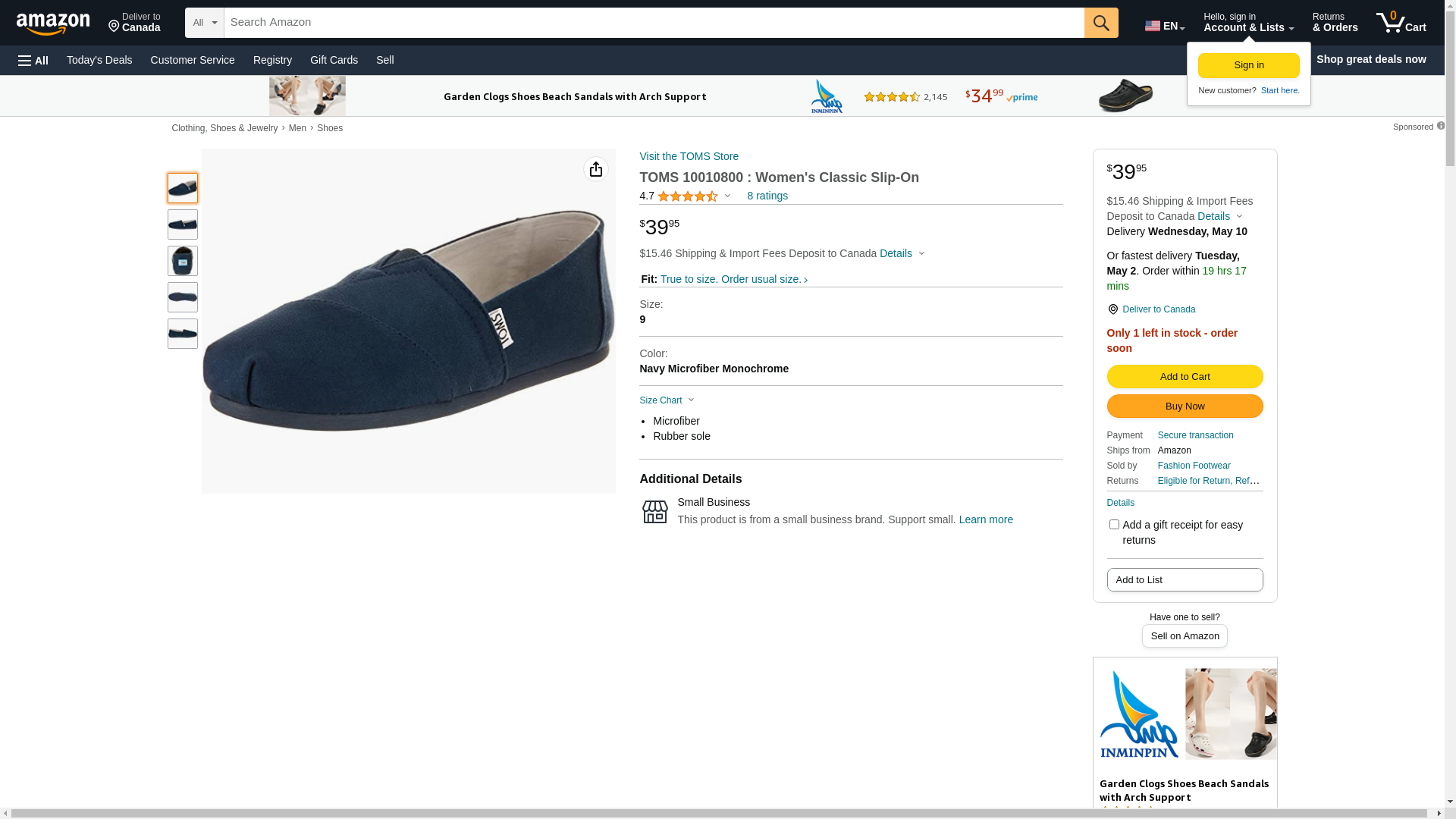 TOMS Navy Microfiber Women's Classics Slip-on Shoes (9)