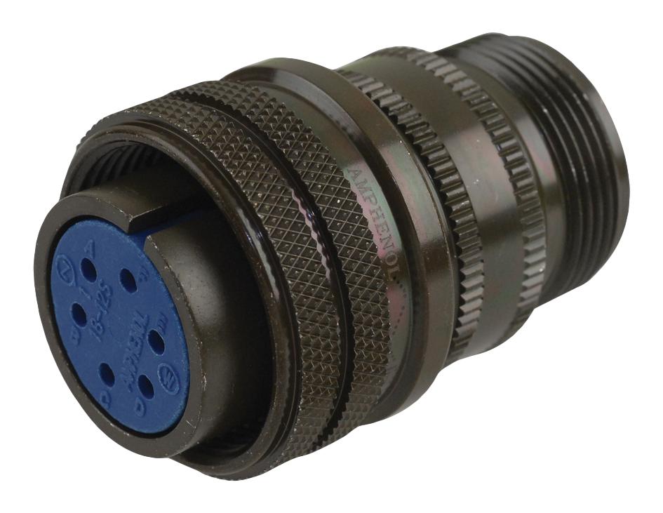 Specification: MIL-DTL-5015<br>Shielding: Yes<br>Connector Type: Circular<br>Connector Style: Receptacle<br>Mounting Type: Cable<br>Orientation: Straight<br>Endbell Type: Threaded - UNEF - Ext<br>Number of Contacts: 5<br>Contact Style: Socket<br>Termination Method: Solder<br>Insert Arrangement: 18-11<br>Contact Size: 5#12<br>Contacts Supplied: Yes<br>Contact Material: Brass or Copper Alloy<br>Contact Plating: Silver<br>Shell Material: Aluminum Alloy<br>Shell Plating: Olive Drab Chromate over Cadmium<br>Shell Color: Olive Drab<br>Insert Material: Diallyl Phthalate<br>Amperage Rating: 23A<br>Operating Voltage DC: 700<br>Operating Voltage AC: 500<br>Operating Temperature: +257 (+125) for 60 hours, +185 (+85) for 1000 hours<br>Contact Mating life: 100<br>RoHS: No<br>Insert Rotation Keying: Normal