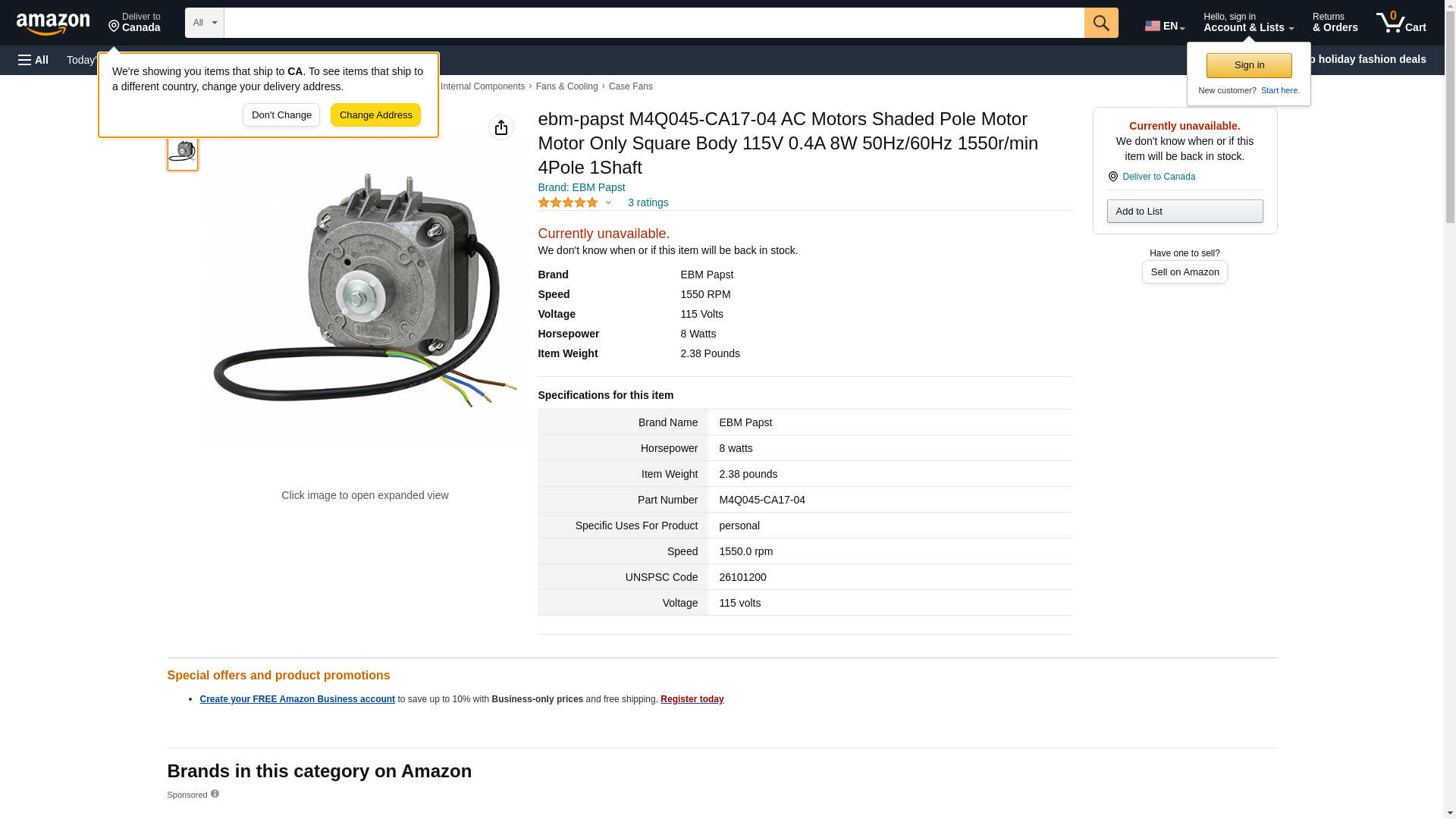 EBM-PAPST M4Q045-CA17-04 AC Motor VAC=115VAC 50/60Hz, 30Win, 8Wout, 0.40A, Sleeve Bearing, Q-Motor Series Motor for Fan, no Fan is clunded.