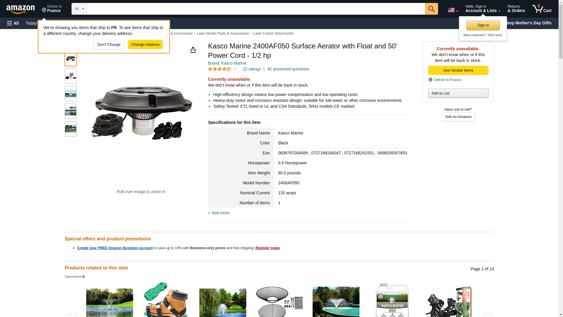 Kasco 1/2HP Surface Aerator -120V with 50 ft Electric Power Cord | Efficient Surface Aeration For Lakes & Pond | Maximum Circulation for Clear Healthy Water