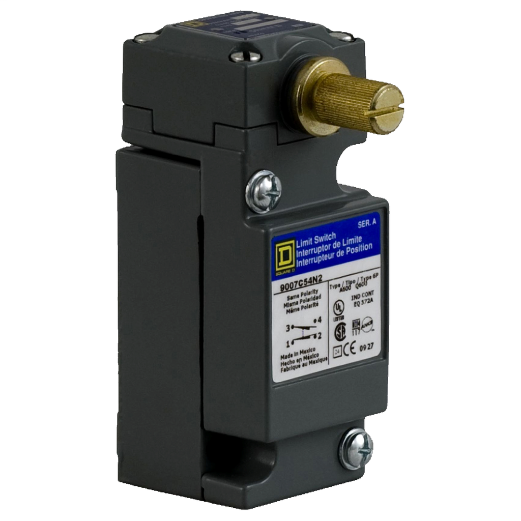 Square D 9007C54N2 Heavy Duty NEMA Limit Switch, Full Size, 1 Pole, Light-Op Torque Rotary Head, CW + CCW Operation