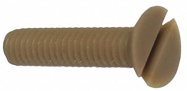 Machine Screw, Head Type Flat, Material PEEK, Finish Plain, Drive Slotted, Thread Size #6-32, Fastener Length 7/8 in, Head Width 0.26 in, Head Height 0.08 in, Tensile Strength 26,800 psi, Dimensional Standards ISO 9001:2008, Pack Size Small, Type Standard Machine Screw, System of Measurement Inch, Thread Style Fully Threaded, Thread Type Coarse, Package Quantity 10