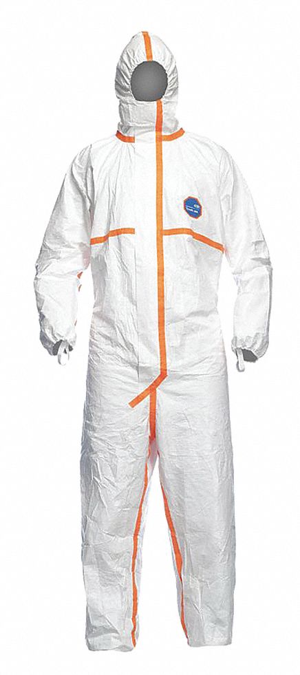 DuPont Tyvek 800 CE-Certified Cat-III Type-3/4/5/6 Chemical Protective Coverall Suit with Sealed Bag, White, 5X-Large, 1-Pack