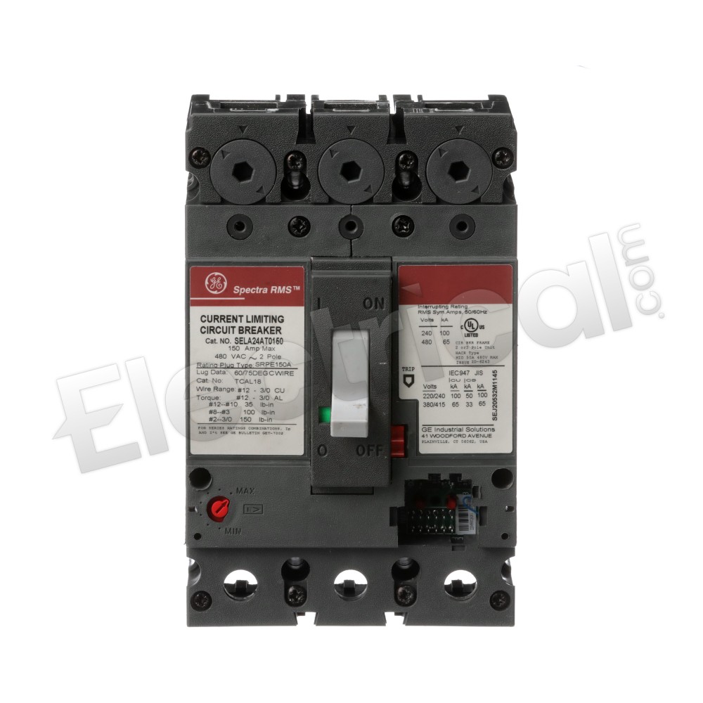 GE SELA24AT0150 digital solid state rms trip; 480 vac (ul/csa), 415 vac (iec); 150 ampere (ul/csa), 160 ampere (iec); 2 pole; interrupting rating 65 kiloampere at 480 vac; approval ce; spectra rms[t] brand; sela model