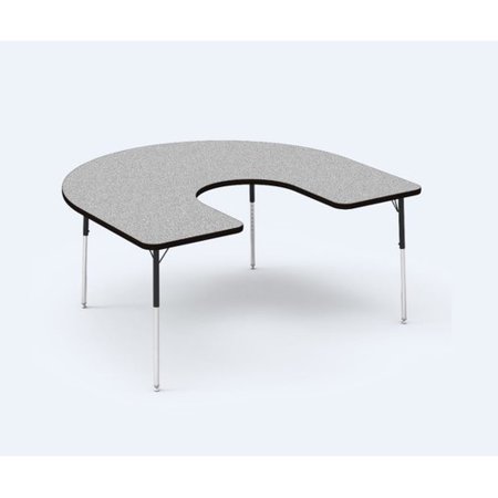 VR1333 <br /> <b>Features</b> <br /> <ul> <li>Unique horseshoe shape</li> <li>1 1/4'' nylon based swivel glides</li> <li>Charcoal black frame with tubular steel legs</li> <li>Table edges cushioned with protective T-mold banding</li> <li>1 1/8'' particlebaord top with a durable high-pressure laminate</li> <li>Banding on Fusion Maple tables is matching</li> <li>Shape: Horseshoe</li> <li>Surface Material: Laminate</li> <li>Adjustable Height: Yes</li> <li>Country of Manufacture: United States</li> </ul> <br /> <b>Dimensions</b> <br /> <ul> <li>Chrome legs adjust from 22'' to 30'' high</li> <li>Minimum Overall Height - Floor to Tabletop: 22"</li> <li>Maximum Overall Height - Floor to Tabletop: 30"</li> <li>Overall Length: 60"</li> <li>Tabletop Thickness: 1.13"</li> <li>Overall Width - Side to Side: 66"</li> <li>Overall Product Weight: 124 lbs</li> </ul>