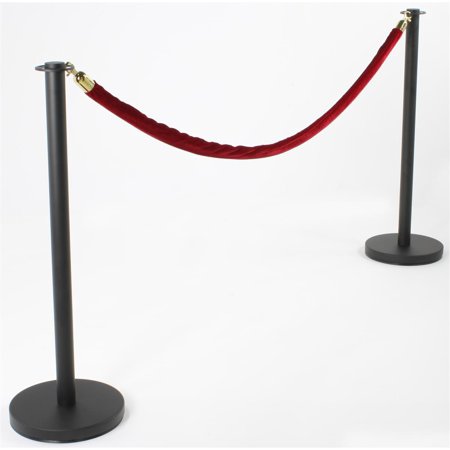 <ul> <li>Rope barrier stanchion set includes (2) matte black steel poles & (1) burgundy velvet rope with brass clasps.</li> <li>78" burgundy rope has a crush resistant foam core and heavy duty brass clasps.</li> <li>Rubberized 13lb. weighted base protects floor and keeps stanchion stable.</li> </ul>