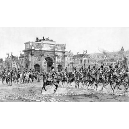 John Parrot/Stocktrek Images Stretched Canvas Art - Vintage military print of Napoleon I reviewing his troops, Paris, France. - Medium 19 x 11 inch Wall Art Decor Size.