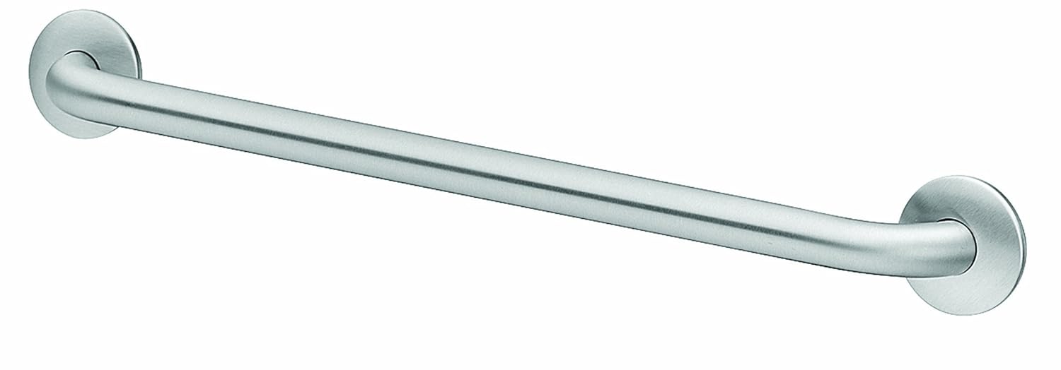 Bradley BradEX grab bar is designed for commercial restroom applications. Escutcheon is made of 22 gauge stainless steel, one-piece drawn construction with exposed surfaces in architectural satin finish, and snaps over flange to conceal mounting screws. 18 Gauge 304 stainless steel tubing. Easy to install with optional anchoring devices also available from Bradley. Grab bar has a 1 inch outside diameter. Grab bar is 24" long. Wall clearance is 1-1/2". When properly mounted, grab bar meets or exceeds the requirements of ANSI A117.1, ADA and ABA Accessibility Guidelines for Buildings and Facilities (ADAAG).