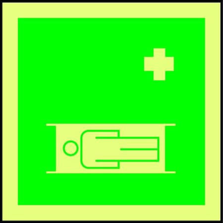 Accuform MLMR147GX, 6" x 6" IMO Evacuation & First Aid Sign"Stretcher" Dura Lumi-Glow Plastic, Pack of 15 pcs