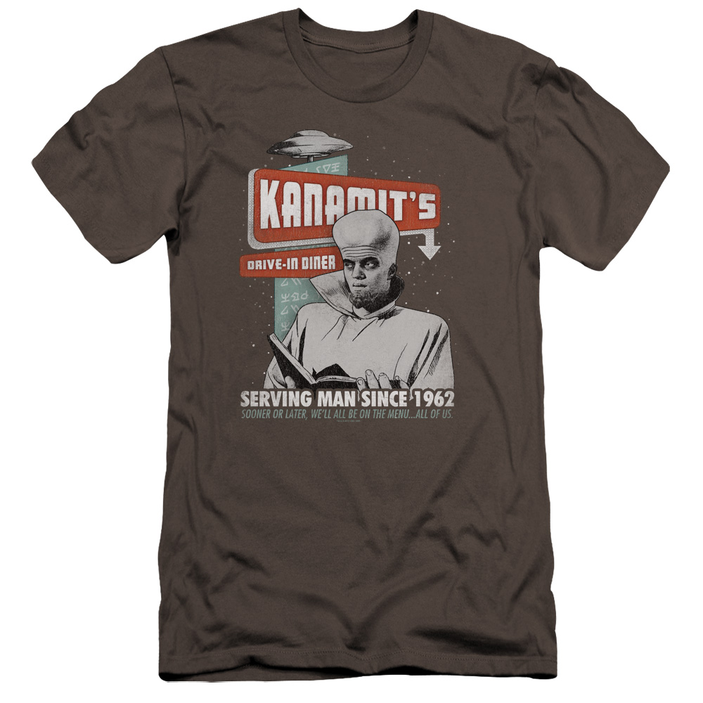 Trevco CBS1562-PSF-3 Twilight Zone & Kanamits Diner Adult Premium Canvas Slim Fit 30-1 HBO Short Sleeve T-Shirt, Cha