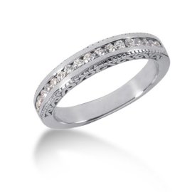 Jewelry Best Buy LLC VJRC-D106855-8 14K White Gold Vintage Style Engraved Diamond Channel Set Wedding Ring Band