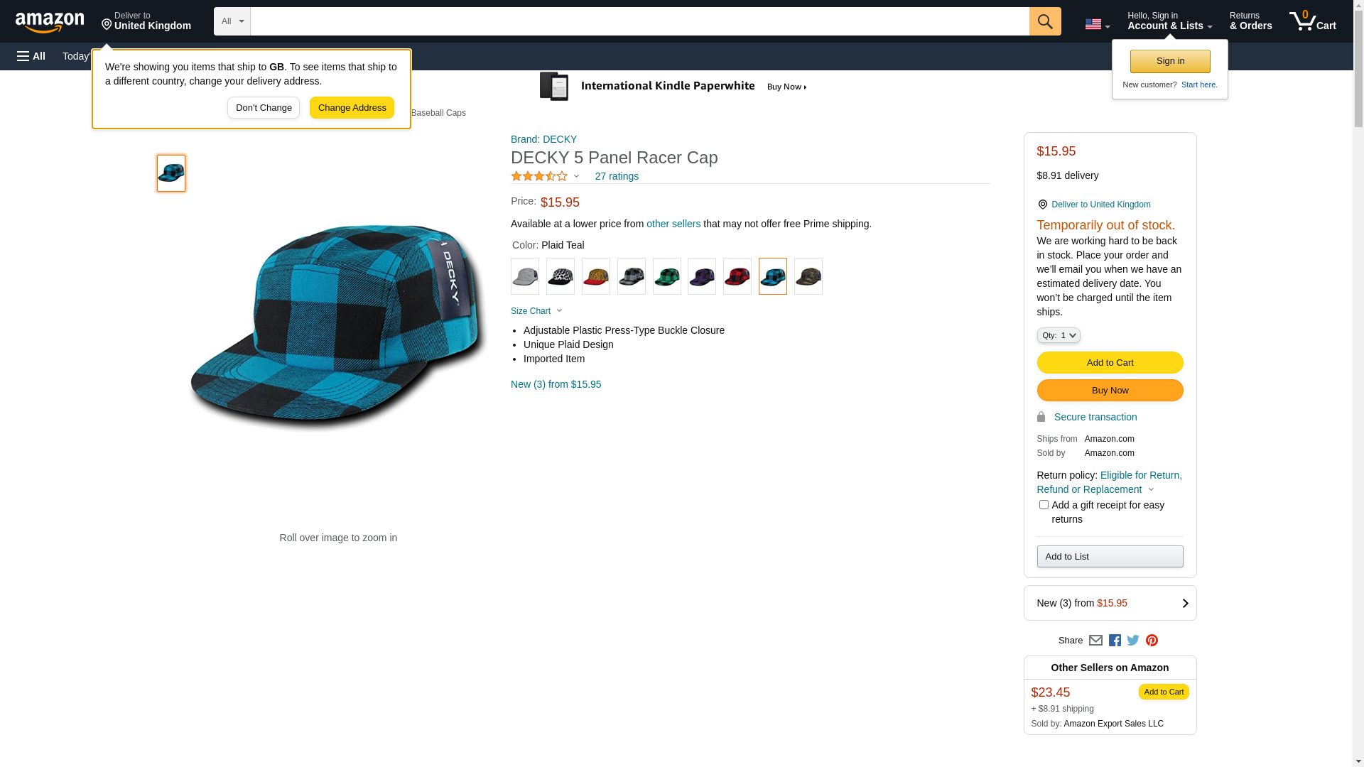 Decky 984-PLAID-TEAL Plaid 5 Panel Racer Caps, Teal