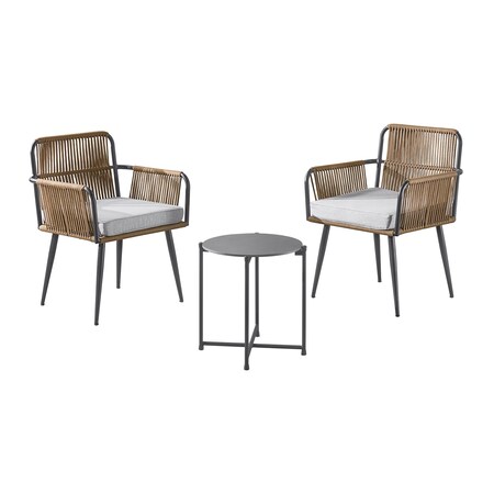 Alaterre Furniture Alburgh All-Weather Outdoor Conversation Set with Two Rope Chairs and 18" H Cocktail Table, Light Gray