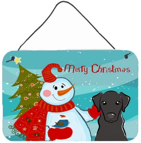 Caroline's Treasures BB1855DS812 Snowman with Black Labrador Wall or Door Hanging Prints Aluminum Metal Sign Kitchen Wall Bar Bathroom Plaque Home Decor, 8x12, Multicolor