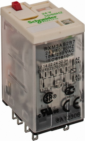 Schneider Electric 24VAC, 11-Pin Square Base General Purpose General Purpose Relay; AC Contact Rating: 10A @ 277V