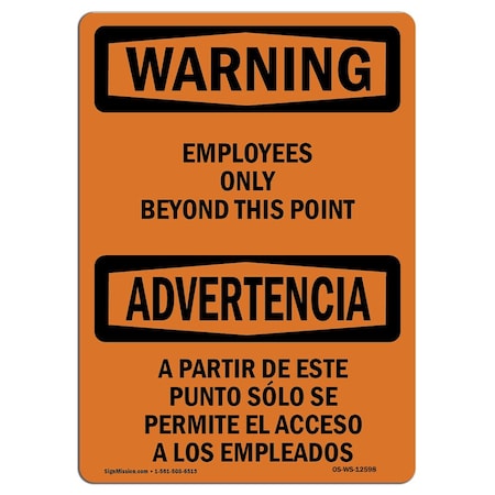 OSHA Waring Sign - Employees Only Beyond This Point Bilingual | Rigid Plastic Sign | Protect Your Business, Work Site, Warehouse & Shop Area | Made in The USA