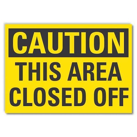 Caution Sign, Vertical Rectangle, Number of Printed Sides 1, English, Sign Legend This Area Closed Off, Sign Legend Background Color Yellow, Sign Legend Style Text