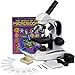- Includes plain stage with stage clips, a set of 25 prepared slides, and The World of the Microscope book