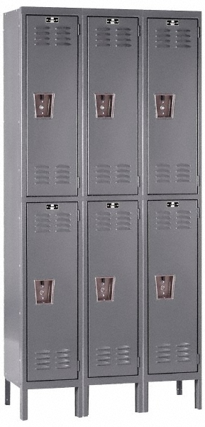 Hallowell U3228-2A-HG Premium Locker, 36" Width x 12" Depth x 78" Height, Double Tier, 3-Wide, Assembled, 725 Gray