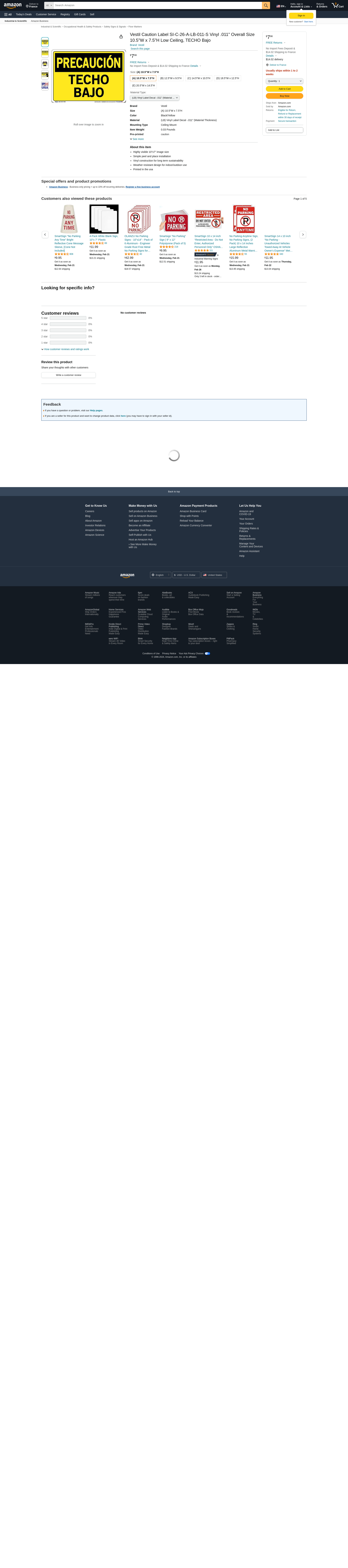 Vestil Caution Label SI-C-26-A-LB-011-S Vinyl .011" Overall Size 10.5"W x 7.5"H Low Ceiling, TECHO Bajo