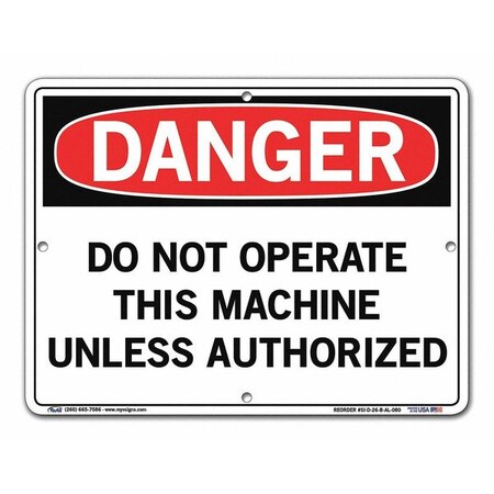Vestil SI-D-26-B-AL-080 DO NOT OPERATE THIS MACHINE UNLESS AUTHORIZED Danger Sign, Aluminum, 0.080" Overall Size, 12.5" W x 9.5" H
