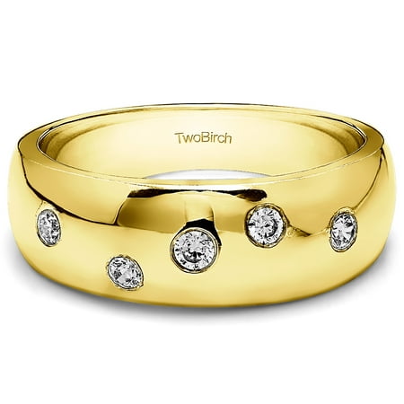 <ul> <li>Sterling Silver: available in Yellow Plated Silver, Two Tone Silver or traditional white sterling silver</li> <li>The ring is set with 0.15 carats of Round stones Brilliant Moissanite</li> <li>TwoBirch rings are made of heavy and solid metal.</li> <li>This ring is available in 10K Gold, 14k Gold and sterling Silver. Click TwoBirch above to see it in all of its variations.</li> </ul>
