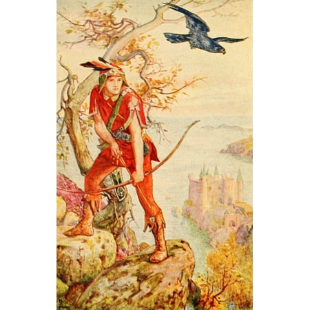 Henry J. Ford Stretched Canvas Art - The Orange Fairy Book 1906 Ian & the blue falcon - Medium 18 x 24 inch Wall Art Decor Size.