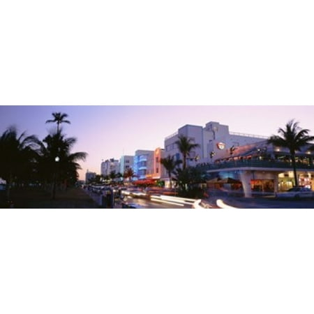Panoramic Images Stretched Canvas Art - Buildings Lit Up At Dusk, Ocean Drive, Miami, Florida, USA - Medium 18 x 6 inch Wall Art Decor Size.